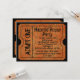 Chamadas de Bilhete para uma festa de casa assombrada, apresenta fundo verde laranja escuro com imagem gráfica web de aranha, num estilo de permissão de admissão. personalize com as informações da sua festa. Faz um excelente, um convite único para o halloween ou qualquer ocasião! Parece um bilhete de entrada real com cortes falsos e lados perfurados falsos, este convite ousado e divertido é excelente para uma festa em qualquer idade! A parte de trás contém design laranja envelhecido com teia de aranha e morcegos pretos.