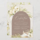 Os convites de dedicação de bebês tropicais em uma paleta de cores neutra que atrai o elemento central arquivado que contém sua cerimônia religiosa e detalhes de comemorações ou festas, acentuados com frondes de palmeiras de cor verde-clara, folhagem de ilhas de praia, orquídeas brancas, botânica seca em boho e grama pampas.