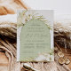 Tropical chic bat mitzvah invitations in an alluring neutral color palette feature a central arched element bearing your ceremony and celebration or party details, accented with pale green watercolor palm fronds, beachy island foliage, white orchids, boho dried botanicals and pampas grass.