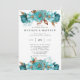 Design apresenta um elemento floral impresso em tons de turquesa e ouro sobre folhas verdes e floradas de pedras... Excelente para as comemorações do casamento!