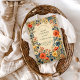 This baby shower design features a lush wildflower frame with vibrant blooms, delicate greenery, and a warm parchment background inspired by vintage botanical illustrations. Soft reds, blues, and golden florals create a cheerful yet timeless garden aesthetic that feels classic, romantic, and inviting.
