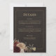 Complete your wedding stationery suite with this elegant vintage witchy floral details card. Designed with rich moody florals, soft burgundy and ivory accents, and refined gold typography on a dark background, it perfectly complements gothic, Victorian, and enchanted wedding themes. Ideal for sharing reception information, accommodation details, and your wedding website in a clear and stylish format. Fully customizable text allows you to tailor every detail to your celebration. A timeless choice for couples seeking dark romance and classic sophistication.