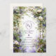 Entra num conto de fadas com este convite de casamento encantado do portão do jardim. Apresentando um verde-luxuoso, rosas brancas e portões de ferro moldados em vintage se abrindo em um jardim secreto, esta design é perfeita para casais planejando uma celebração rústica, ao ar livre ou à floresta. A trabalho de arte floral romântica cria uma sensação de eterno, de livro de histórias, dando o tom para um elegante campo ou casamento de jardim. Personalize com seus nomes e detalhes para um começo verdadeiramente mágico ao seu dia especial.