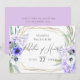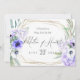 CONVITE À PROPOSTA DE PARTES BRIDAIS | Formas geométricas Douradas de aquarelas com folhas de eucalipto, anêmonas lilases e violetas e flores de hydrangea, uma estrutura geométrica de terrário multifacetada de ouro enfeitada com buquês florais. Esta é parte de um Conjunto de Papelaria de Casamento com casamento, chá de fraldas e outros artigos de papelaria.