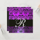 Convites VIOLET BLACK DAMASK MONOGRAM,,branco