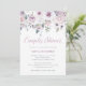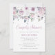 Estes belos convites para chás apresentam uma pincelada de aquarela, púrpura macia e flores brancas com muitas folhas botânicas e elegante caligrafia roxa clara.