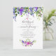 Convite violeta e roxo de morcego floral mitzvah com tipografia elegante.