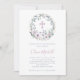 Estes lindos convites de batismo apresentam uma cruz roxa violeta clara com aquarela rosada, roxo suave e flores brancas.