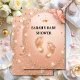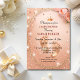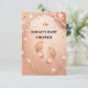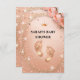 Este design deslumbrante apresenta sotaques brilhantes de ouro de pêssego em um fundo macio de pêssego, exibindo lindamente pequenos pés de bebê, rosas e tiarra. Perfeito por receber uma pequena princesa, este convite elegante adiciona um toque de glamour ao seu evento especial. Celebre em estilo e torne seu chá de fraldas inesquecível com este luxuoso e atraente convite!