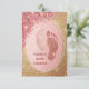 Este design deslumbrante apresenta sotaques brilhantes dourados sobre um fundo cor-de-rosa macio, exibindo maravilhosamente pequenos pés de bebê e mãe. Perfeito por receber uma pequena princesa, este convite elegante adiciona um toque de glamour ao seu evento especial. Celebre em estilo e torne seu chá de fraldas inesquecível com este luxuoso e atraente convite!
