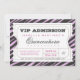 Um design divertido na forma de um tíquete VIP Admission, na impressão em tons de zebra de preto e roxo, contém todas as informações do evento em um formato fácil de personalizar. Uma forma excelente de construir o entusiasmo de seus convidados enquanto eles antecipam o evento especial que está planejado para celebrar a Quinceanera da sua filha!