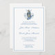 Personalize os nossos belos convites de casamento católicos tradicionais com uma bela imagem personalizada da Virgem Bêntea Maria sobreposta ao símbolo Marian "M" e às flores azuis. A parte traseira inclui todas as informações para a recepção, o rsvp e o registro. Todo texto e fontes podem ser modificados.