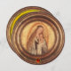 Espiritual e clássico obra-prima Renascentista do pintor flamengo Quentin Massys em cores vibrantes marrom, branco, amarelo-ouro. Óleo em madeira com folha de ouro. Design artístico com uma brilhante pedra vermelha rubi.