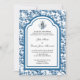 Apresentando um belo e tradicional convite para o casamento e a recepção católicos com uma imagem da Virgem Bêntea Maria, Nossa Senhora de Graça sobrepôs-se a um símbolo Marian "M" com um fundo floral azul. Todo texto e fontes podem ser modificados.