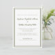 O Virtual Wedding livestream Invitation apresenta um simples design minimalista contemporâneo, com uma dupla borda em verde-oliva em um fundo branco nítido. A formulação tradicional proporciona sofisticação eterno mas moderna. Personalize a design do casamento com seus detalhes do livestream em caracteres verdes e guião. A parte de trás do cartão corresponde a verde.