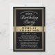 Quer amigos e familiares estejam praticando distanciamento social ou simplesmente vivam longe, conectem-se com eles online com uma festa de aniversário virtual na moda! Todo o texto neste modelo é simples de personalizar para um drive-by/drive através de desfile de carro ou evento de videoconferência de zoom com bate-papo na Internet. Também é possível incluir uma mensagem pessoal, se necessário, devido a um cancelamento ou adiamento. A design a preto, branco e ouro apresenta folha falsa, caligrafia moderna de script e elegante deco de arte vintage inspirada na tipografia. Observe que o ouro é impresso a cor, não a folha metálica.