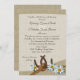Convites de casamento em estilo country com margaridas ocidentais e ferraduras sobre o aspecto rústico da burlap.