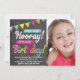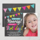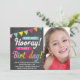 Brilhante, colorido e divertido design de convite de aniversário com quadro-negro e faixa de festa "Viva! É Meu Aniversário" da Modern Maryella.