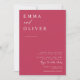 Este convite apresenta uma fonte de tipografia serif e caligrafia em bloco, limpa e simples, em fundo viva magenta. A simplicidade e a design limpa deste convite funciona bem com todos os temas de casamento e definitivamente uma adição excelente ao seu casamento. Basta personalizar os nomes e o texto em alguns passos fáceis e personalizar o cartão de convite com sua foto do casal feliz e substituir o Código QR pelo seu no verso do convite para dar um toque pessoal agradável ao seu convite. Note-se que a elegante caligrafia dos termos "e" e "detalhes + rsvp" não pode ser editada, suprimida ou movida. Eles estão consertados. Se precisar alterar a cor, você pode personalizar o convite para o cartão. Você pode personalizar e personalizar o convite para ajustado das suas necessidades de evento de casamento e clicar em personalizar o convite. EXEMPLO: Se você quiser obter um exemplo deste convite, poderá solicitar apenas UM cartão (alterar a quantidade para UM) e selecionar suas preferências para ver como ele é exibido e se sente. Pode consultar o resto dos nossos produtos no Zazzle em https://www.zazzle.com/store/1creativemastermind/products Se quiser consultar o nosso compro sobre o Etsy, pode consultar 1CreativeMastermind.etsy.com