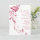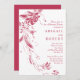 Este belo convite de janto de ensaio de casamento é garantido para criar uma impressão duradoura. O seu viva magenta, rosa e design branco, é decorado com um desenho saboroso de uma vila floral, adornada com flores e foliagens delicadas, dando uma vibração sonhadora e romântica. O tipo de eterno incluído adiciona um toque clássico e sofisticado, enquanto que o verso apresenta suas iniciais em branco moldadas em um fundo magenta.