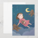 Uma bela ilustração de uma garota voando com biscoitos de pão-de-gengibre no céu noturno nevado
