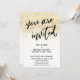 Uma fonte manuscrita casual e moderna foi usada para criar um gráfico que representa as palavras "você é convidado". O fundo foi coberto com uma imagem que simula confetes dourados metálicos. Use os campos do modelo para adicionar seus detalhes pessoais e tornar este sinal festivo único e seu. // 100 //