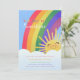 Jogue um adorável chá de fraldas de bebê do arco-íris ou sol neste chá de fraldas bonito e personalizado com um simples arco-íris desenhado à mão, nuvens e sol sorridente. Este convite é personalizável e você pode editar o texto clicando em "personalizar este modelo". O texto principal diz "Você é meu sol" em letras coloridas no arco-íris. Uau, seus chás de fraldas convidados com esses bonitos cartões de sol arco-íris. A parte traseira desta placa apresenta um padrão repetitivo pintado manualmente de nuvens texturizadas.