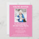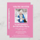 Adicione sua foto de meninas a este convite de aniversário rosa e branco. Apresentando texto ousado e divertido sobre um fundo rosa brilhante. Altere o texto e a foto clicando no botão personalizar.