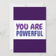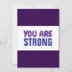 Duas design laterais, fortes de um lado, poderosas do outro. Alguns dias, você precisa de um estranho para lembrá-lo que você tem isso. Seja tão estranho para uma pessoa que precisa ouvi-lo. Você é forte. Você é poderoso. Capacite as pessoas lembrando-lhes que elas são fortes, poderosas, capazes. Nem tudo está perdido. As coisas não são inúteis. Eles não estão indefesos. Descrição da design: O lado frontal lê: "Você é forte." As palavras "Você está" estão em um grande estilo de escrita manual roxo em todos os bonés em uma linha na parte superior do design. A palavra "Forte" está abaixo dela em uma fonte de sans serif azul de todos os bonés. O texto em ambas as linhas tem aproximadamente a mesma largura na área do design e aproximadamente a mesma altura, apesar das diferentes fontes. O texto está centrado em um fundo retângulo branco. Abaixo está uma cor de fundo roxa escura. O verso diz: "Você é poderoso." Mesma design da frente, um tipo de letra ligeiramente diferente porque "poderoso" é uma palavra maior do que forte. O texto são modelos e você pode personalizar ainda mais as cores, fontes, etc.