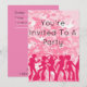 Você está convidado para uma festa Convite é um fundo rosa legal com silhuetas de pessoas dançando.