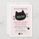 Este belo convite de chá de fraldas "Você me cozinha direito meow" mostra um rosto de gato preto, osso de peixe, e cocô em uma rosa claro enquadrada por uma borda branca. O verso apresenta um fundo cor-de-rosa com padrões pretos de gatos e ossos de peixe. Personalize para suas necessidades.Você pode encontrar mais produtos correspondentes na minha loja.