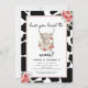 Você ouviu o Moos? Este convite de aniversário de vaca é editável para qualquer idade. Apresenta flores cor-de-água rosa e rosa-claro e cor-de-rosa-claro e uma borda de impressão de vaca. A parte de trás é um cor-de-rosa pincelado correspondente. O texto do roteiro o torna moderno e a vaca das terras altas a aquarelas o torna elegante e fresco.