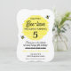 Um adorável convite de aniversário para o tema das abelhas. Abelhas bonitas rodeiam uma colmeia d'água com uma faixa de trás. Todo o texto é editável para ajustado de suas necessidades.