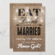 "Eu não posso dizer "eu faço" sem você!", placa moderna plana de flor de país rústico, apresentando um fundo de efeito burlap castanho rústico, luzes giratórias de jarro elegantes, as palavras "EAT, DRINK AND BE CASADO" e sua formulação de floricultura.