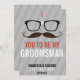 Você será meus vidros do geek do padrinho de casamento que wedding o convite. Realmente um divertimento e convite do homem do geek original um melhor. Peça que seu melhor homem esteja em seu casamento no estilo do geek! Caracteriza um par grosso de vidros pretos com uma parte de fita no centro e de um bigode ondulado enorme. O geek e o hipster totais rolaram em 1 convite do casamento. O fundo guardara uns dois tonificou o cinza que tem listras nele, fazendo o pop da tipografia!