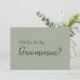 Este belo cartão de convite para padrinho de casamento de 5" x 7". Isto é melhor para o noivo. Se você está perguntando a alguém para ser sua padrinho de casamento para seu futuro casamento, então por que não escolher esses cartões de padrinho de casamento. Este cartão de convite personalizado fará com que seu amigo, irmão, primo, sobrinho, filho ou qualquer outra pessoa que você escolher sinta isso especial. Este convite é facilmente personalizado clicando no botão Personalizar sob a imagem onde você poderá alterar o texto, a fonte e o tamanho. Você pode convidar seus melhores amigos em estilo com estes convites clássicos. É adequado para o Melhor Homem ou para Padrinhos de casamento. Envie-lhes este cartão de padrinhos de casamento.