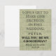 É um belo momento de 5" x 7" para adequar o Conselho preto com cartão de convite de gravata branca. Isto é melhor para o noivo. Se você está perguntando a alguém para ser sua padrinho de casamento para seu futuro casamento, então por que não escolher esses cartões de padrinho de casamento. Este cartão de convite personalizado fará com que seu amigo, irmão, primo, sobrinho, filho ou qualquer outro que você escolher sinta isso especial. Este convite é facilmente personalizado clicando no botão Personalizar sob a imagem onde você poderá alterar o texto, a fonte e o tamanho. Você pode convidar seus melhores amigos em estilo com estes convites clássicos. É adequado para o Melhor Homem ou para Padrinhos de casamento. Envie-lhes este cartão de padrinhos de casamento.