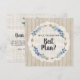 Lindos elementos florais em azul jeans acentuados com detalhes de flechas boêmias arrojadas dão a este design muitas boas vibrações! Fundo de madeira rústica, tinta branca e estilo de aquarela realista trazem textura graciosa e charme. Natural e fresco para uma celebração de casamento contemporâneo.