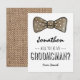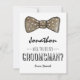 Cartão de padrinhos country tweed com uma gravata borboleta xadrez rústica, texto simples e um padrão de tecido tweed marrom no verso. Esses cartões de casamento facilmente personalizáveis podem ser alterados para atender às suas necessidades, desde a adição de sua própria mensagem pessoal até a mudança da fonte e cor.