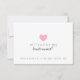 Você será minha dama de Bridesmaid? | Cartão especial com coração e nome para convidar amigos e familiares para fazerem parte da sua festa noiva. *Ao personalizar o espaçamento duplo da nota. Altere o tamanho do plano de fundo e/ou do texto e/ou as cores para se adequar à sua ocasião. Imagens/texto frontais podem ser copiados e colados para trás, se necessário.