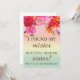 Este belo "5" x 7" será a minha dama de honra? Isto é melhor para a noiva. Se você está pedindo a alguém para ser sua dama de honra para seu futuro casamento, então por que não escolher essas cartas de dama de honra. Este cartão de convite personalizado fará com que seu amigo, primo-irmã, sobrinho, filha ou qualquer outro que você escolher sinta isso especial. Este convite é facilmente personalizado clicando no botão Personalizar sob a imagem onde você poderá alterar o texto, a fonte e o tamanho. Você pode convidar seus melhores amigos em estilo com estes convites clássicos. É adequado para a florista, a madrinha de casamento ou para a matrona de honra. Envie-lhes este cartão da dama de honra.