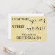 Este belo "5" x 7" será a minha dama de honra? Isto é melhor para a noiva. Se você está pedindo a alguém para ser sua dama de honra para seu futuro casamento, então por que não escolher essas cartas de dama de honra. Este cartão de convite personalizado fará com que seu amigo, primo-irmã, sobrinho, filha ou qualquer outro que você escolher sinta isso especial. Este convite é facilmente personalizado clicando no botão Personalizar sob a imagem onde você poderá alterar o texto, a fonte e o tamanho. Você pode convidar seus melhores amigos em estilo com estes convites clássicos. É adequado para a florista, a madrinha de casamento ou para a matrona de honra. Envie-lhes este cartão da dama de honra.
