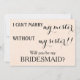 Este belo "5" x 7" será a minha dama de honra? Isto é melhor para a noiva. Se você está pedindo a alguém para ser sua dama de honra para seu futuro casamento, então por que não escolher essas cartas de dama de honra. Este cartão de convite personalizado fará com que seu amigo, primo-irmã, sobrinho, filha ou qualquer outro que você escolher sinta isso especial. Este convite é facilmente personalizado clicando no botão Personalizar sob a imagem onde você poderá alterar o texto, a fonte e o tamanho. Você pode convidar seus melhores amigos em estilo com estes convites clássicos. É adequado para a florista, a madrinha de casamento ou para a matrona de honra. Envie-lhes este cartão da dama de honra.