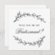 Preto e branco "Você será minha dama de honra?" com elementos botânicos.
