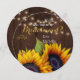 Personalizado será a minha dama de honra / madrinha de casamento / florista um cartão de texto editável com elegante ouro amarelo rústico girassol em madeira marrom escura com cordas de luz cintilante. Ideal para o seu verão ou outono | elegante país russo | casamento temático no quintal exterior.
