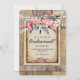 Cartão de dama de honra de vinhedo chique vintage com fundo de madeira de barril de carvalho rústico, arranjo floral rosa luxuoso, luzes cintilantes, tecido de aniagem e um modelo moderno de você será minha dama de honra.