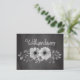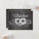 Cartão personalizado de madrinha de preto e branco rústico em quadro-negro - Você será minha madrinha? Cartão de pedido de participação no casamento para convidar os entes queridos para fazerem parte da sua comitiva. Lê 'Você será minha madrinha?' em letras brancas elegantes na frente. Visual de quadro-negro rústico na frente e no verso. Grinalda floral em aquarela na frente em preto e branco. O verso tem letras em estilo manuscrito correspondentes com mensagem personalizada com o nome da madrinha, pedido e assinatura de encerramento personalizada. Pequena grinalda floral vintage correspondente na parte inferior. Frente e verso completamente personalizáveis. Altere os estilos de texto, cores ou formulação. Existem diferentes estilos e tamanhos de cartões de madrinha. Altere a formulação para criar cartões de proposta para a comitiva. Temos mais cartões de pedido de participação no casamento em nossa loja Z