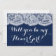 Convites Você Será Minha Flor? Marinho Azul e Lace Branco