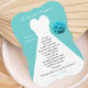 Este convite de madrinha de casamento moderno apresenta um vestido de noiva e um poema especial para a sua madrinha de casamento. Rosas aparecem à direita sobre um fundo aqua. Este convite elegante pode ser personalizado com o nome da sua madrinha de casamento e o seu nome também! Direitos autorais