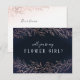 Desenho floral de folhagem botânica em cor de rosa ouro falso sobre fundo azul-marinho escuro, moderno e elegante, ótimo cartão de proposta de dama de honra "Você será minha menina de flores" para casamento moderno e casamento de inverno.